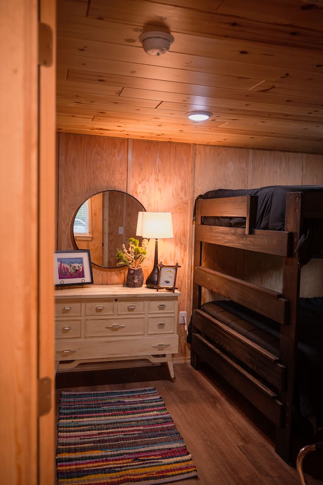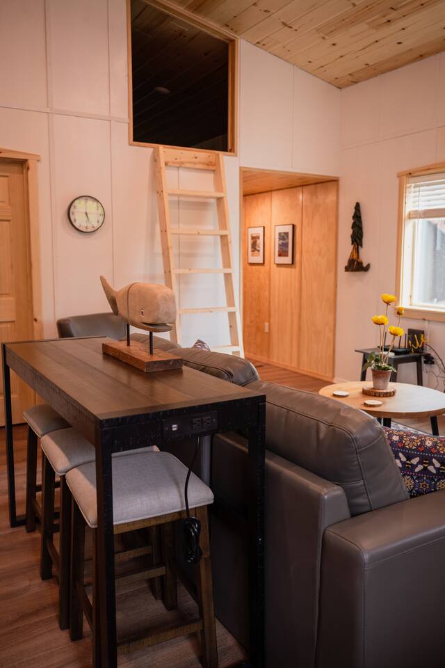 my place is only 4 miles from seward and it is located on it's own lot with free parking.THE HOME HAS 3 TV'S ONE IN EACH BEDROOM AND THE LIVING ROOM. IF MORE THAN 8 PEOPLE BOOK YOU ARE GOING TO HAVE TO USE A LATTER TO CLIMB UP THE LOFT AND THE LOFT IS 30 INCHES AT THE LOWEST HEIGHT AND 53 INCHES AT THE HIGHEST HEIGHT. IT HAS TWO QUEEN SIZE BEDS UP THERE AND THATS IT.